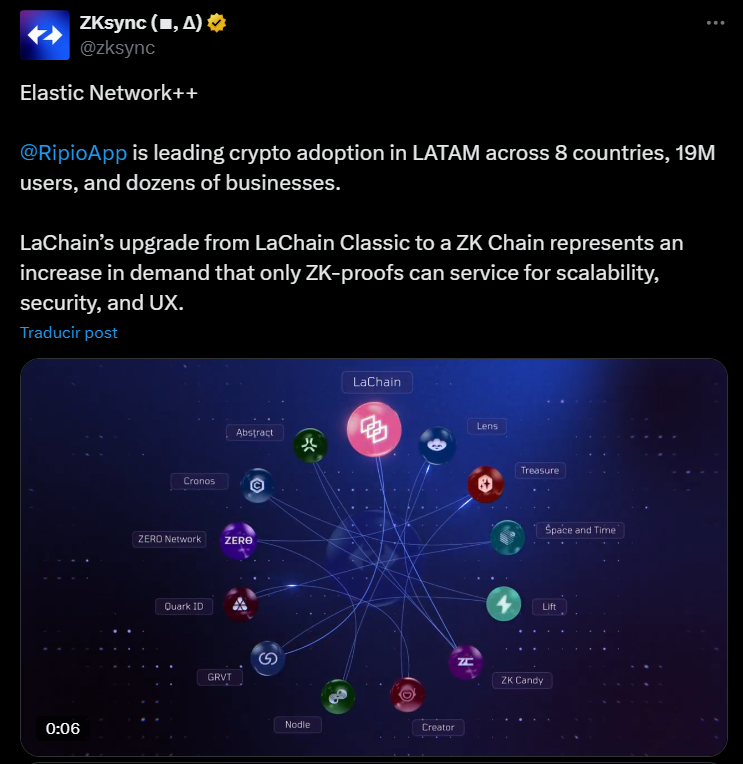 Alex Gluchowski, cofundador de ZKsync, explicó la importancia de la integración de LaChain porque «es otro paso adelante para que Latinoamérica continúe liderando la adopción global resolviendo problemas locales. Ripio y LaChain han demostrado ser líderes en proporcionar tecnología que cruza fronteras y aporta soluciones prácticas.”