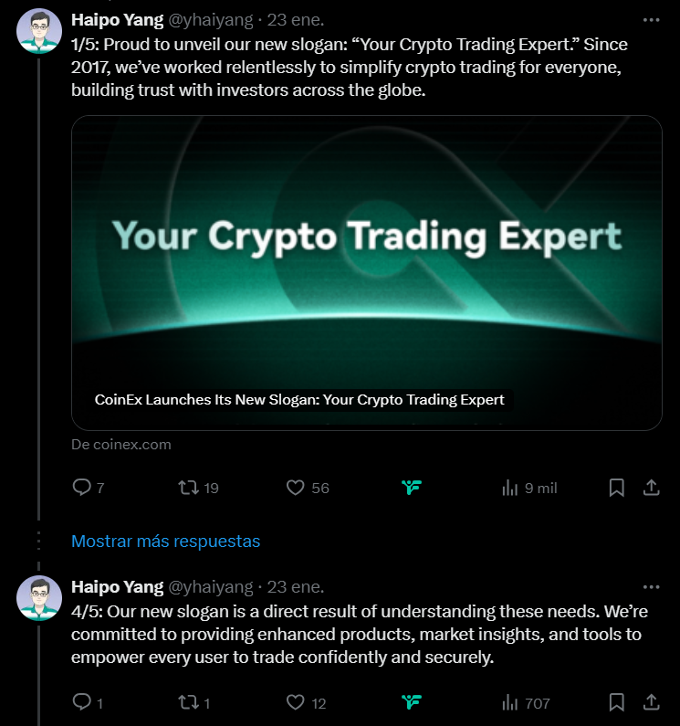 Mientras tanto, en un contexto marcado por la creciente regulación del mercado de criptomonedas y la consolidación del blockchain como una tecnología transformadora, los ejecutivos de CoinEx han decidido que es un excelente momento para renovar su imagen con un nuevo lema: “Tu Experto en Trading Cripto”.