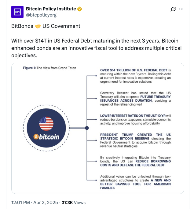 Los Bitcoin Bonds o BitBonds, una propuesta del Bitcoin Policy Institute, podría convertirse en un innovado motor para revitalizar el precio de Bitcoin y solucionar la creciente crisis de deuda de los Estados Unidos.