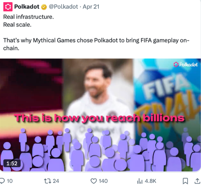 Este innovador juego móvil no solo permite a los jugadores crear sus propios equipos y jugar partidos, sino que también incorpora la posibilidad de intercambiar NFT (tokens no fungibles) de sus futbolistas favoritos. «El fútbol… no es solo un deporte, es un lenguaje universal para más de 5.000 millones de fanáticos y, por primera vez, el juego FIFA se está desarrollando en la blockchain», afirmó Polkadot en una reciente publicación en X.